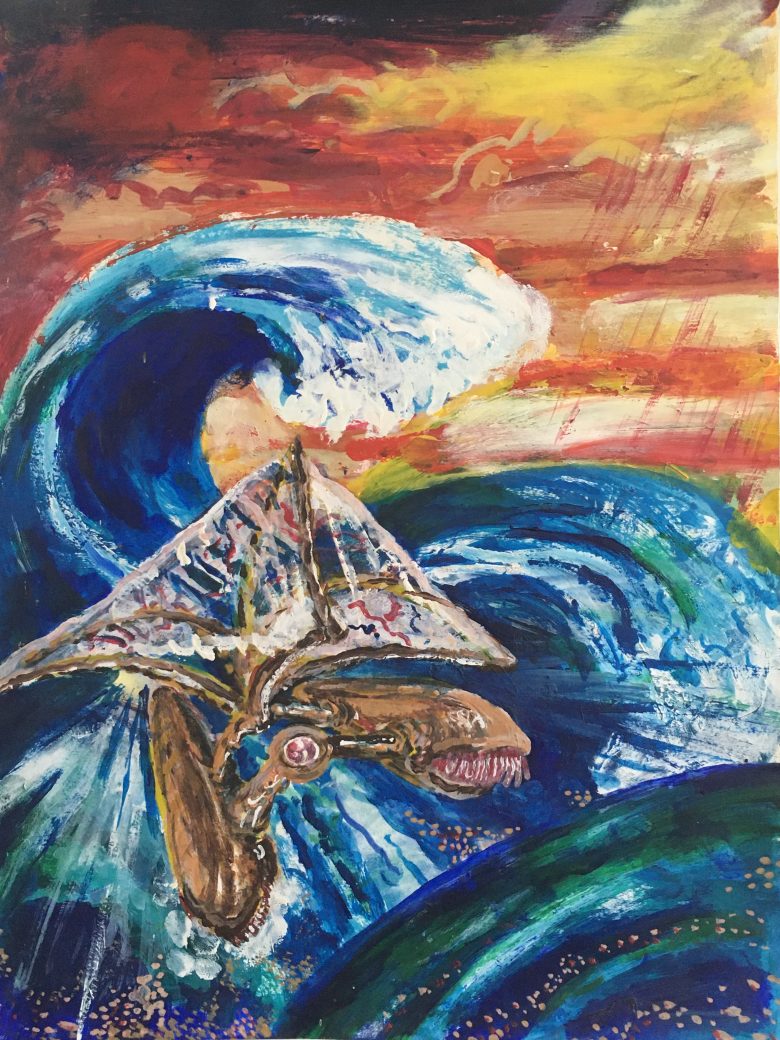 Bemærk lige, hvordan jeg tolkede den ind i et anatomisk skema. Og tag så også lige Det Levende Hav med, samt havet omkring øverst ovenstående “Boatman”. Thi dette er tegnet før jeg vidste noget om dem hér: