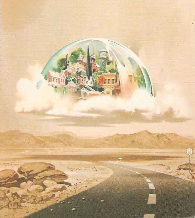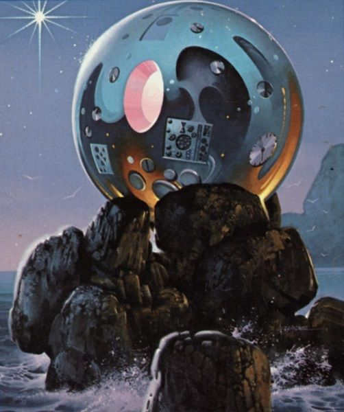 Igen: – denne forside er ikke en illustration af nogen scene, der forekommer i romanen, men derimod et yderst symbolladet billede på, hvad der har bragt romanens handling “til live”. En rumraket, der er en katedral. Og det giver faktisk mening.